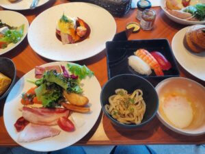 - ホテルの朝食はこんな感じ
