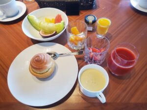 ホテルの朝食はこんな感じ