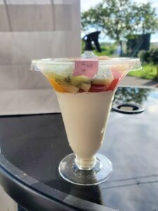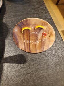 食べてるとき、お店の人が「プレゼントマンゴー」を持ってきたんです。