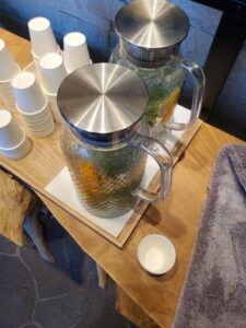 帰りに、入り口にあったデトックスウォーターも1口だけ・v・